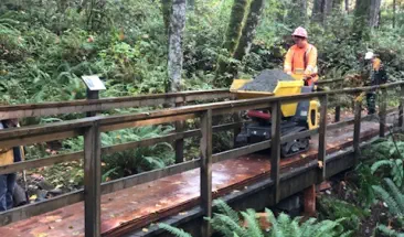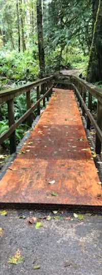 to install, last much longer, and could carry equipment whenever the Yew Loop needs resurfacing again and it would even withstand a big tree falling on it. We also
