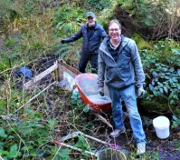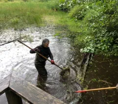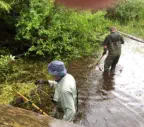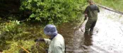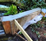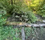 Another concern for us was the little seasonal wetland on the upstream side. Two logs had been placed there in the creek, likely at the time the bridge was built, to form