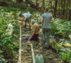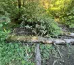 a small dam and waterfall. In time, sediment has collected behind and formed the fertile little flat, full of yellow Skunk Cabbage every spring. Now the logs would have