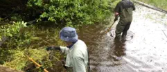 Another concern for us was the little seasonal wetland on the upstream side. Two logs had been placed there in the creek, likely at the time the bridge was built, to form