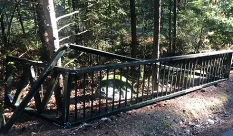 would build a sturdy split rail fence along both sides of the crossing, for safety and to help ‘grounding’ the construction into the surrounding forest.
